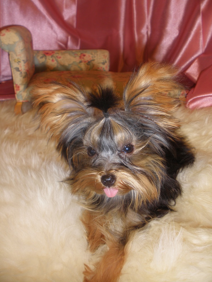 Isabelle "Mouser of Lafayette" Isabelle "Mouser of Lafayette" AKC REGISTERED, WEIGHT: 4.5 LBS. Born: June 26th, 2013 Isabelle is a Baby Doll Face Yorkshire Terrier She lives with Clyde & Bruno, Brothers "From the Bonnie & Clyde Gang" Isabelle is the Smallest Yorkie in our house. She is Boss, and is very smart, she actually communicates with humans, actually sounds like she talks sometimes. She is very expressive and full of Personality. Her eyes follow you without moving her head. She is very energetic and fast. Jumps around and thinks she is the toughest one in the house with no fear. Loves to sleep under the covers after a hard day of running around...