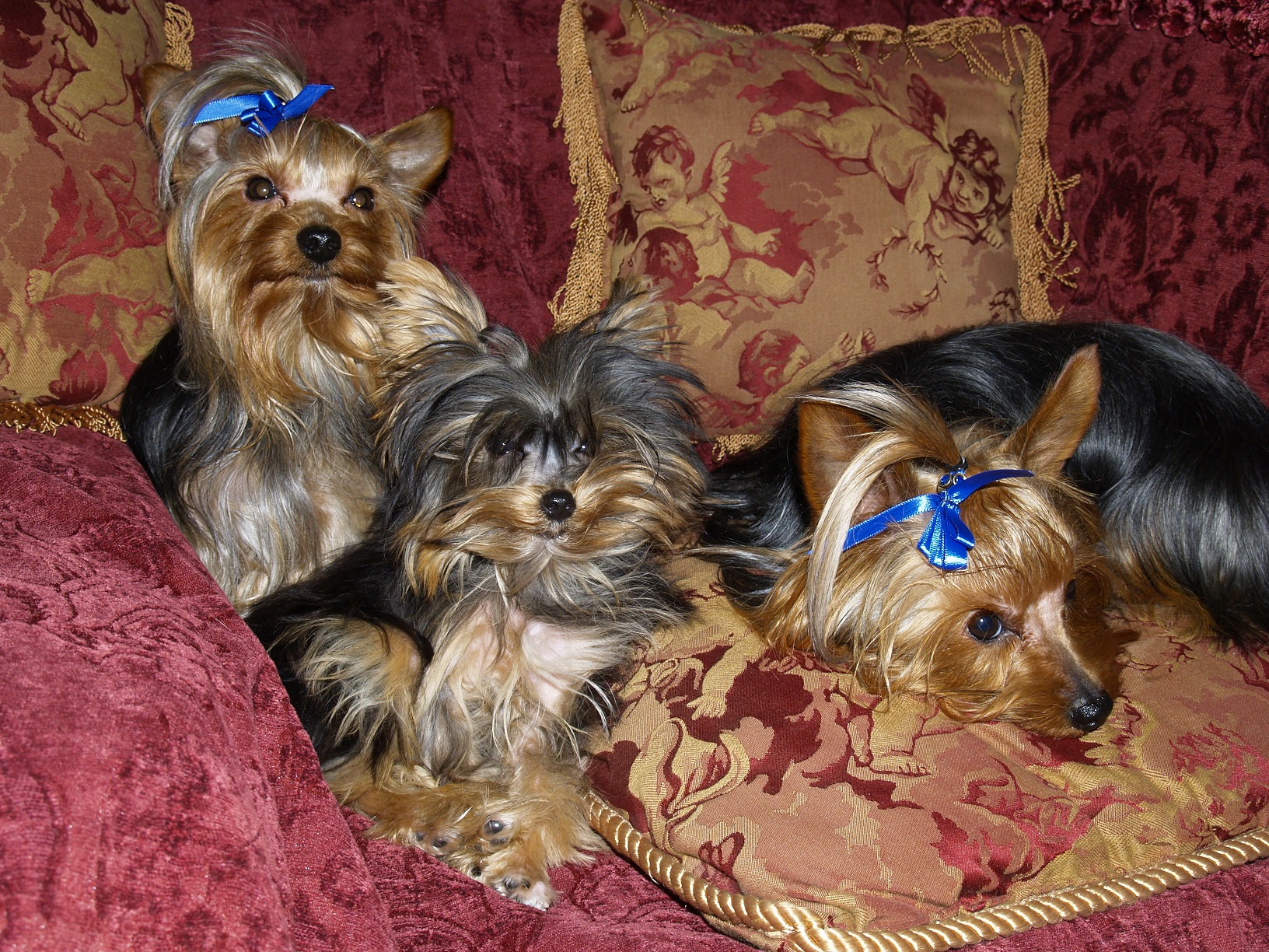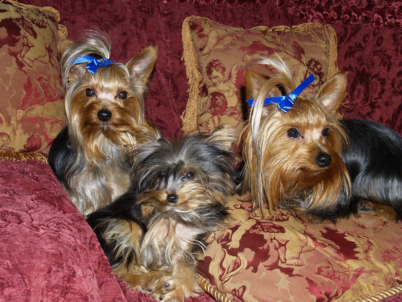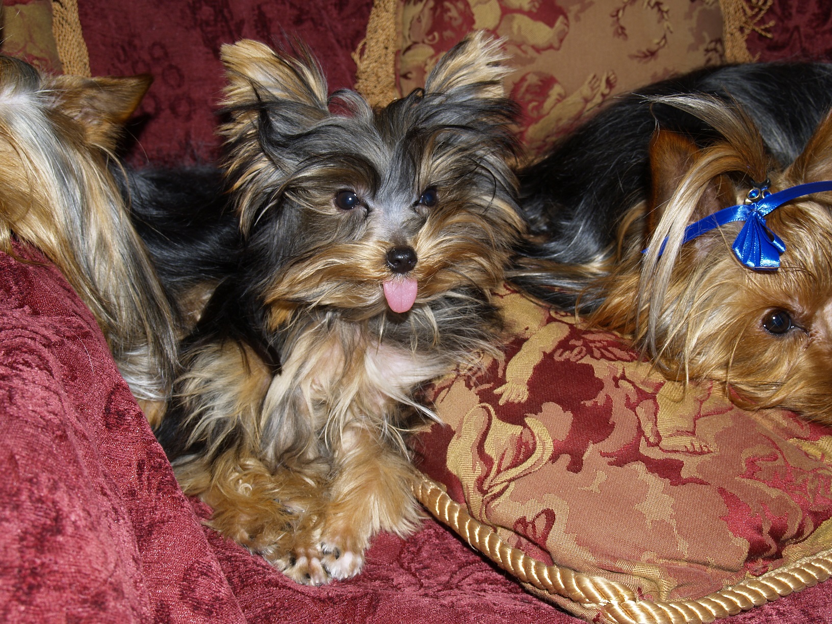 We have raised them together, they are inseparable. Clyde is Slim and is a cross between a Fox Face Yorkie and a Baby Doll Face Yorkie and his Brother Bruno is definately a Teddy Bear Yorkshire Terrier. Bruno is muscular and larger than his younger brother Clyde. Even though Clyde is smaller, he seems to be fearless and his bigger brute of a Brother kind of takes care of his younger brother, but he is much more cautious as he likes to stay in the background and watch his younger Brother instigate all types of different situations. It is very interesting watching these two in action.
