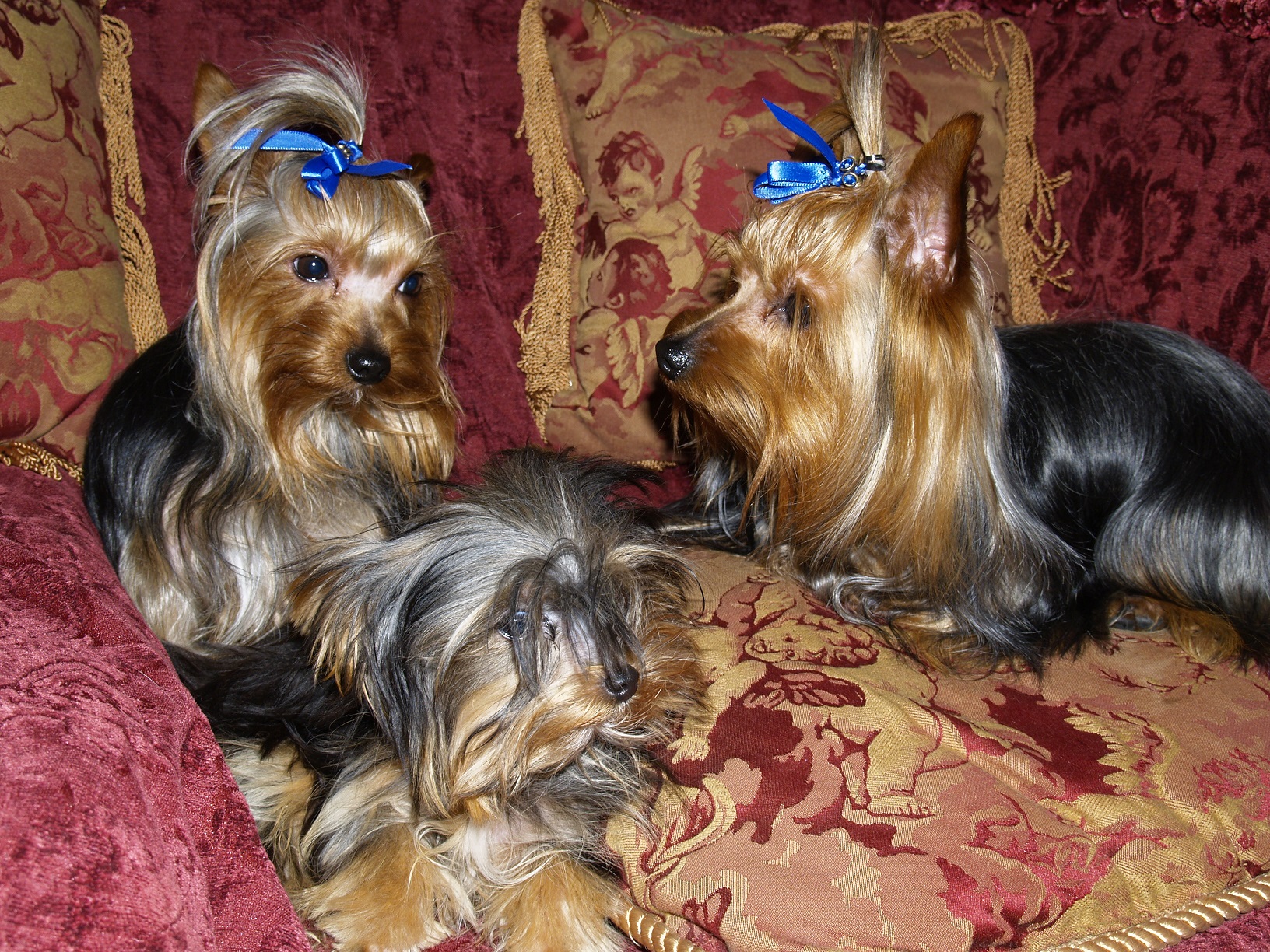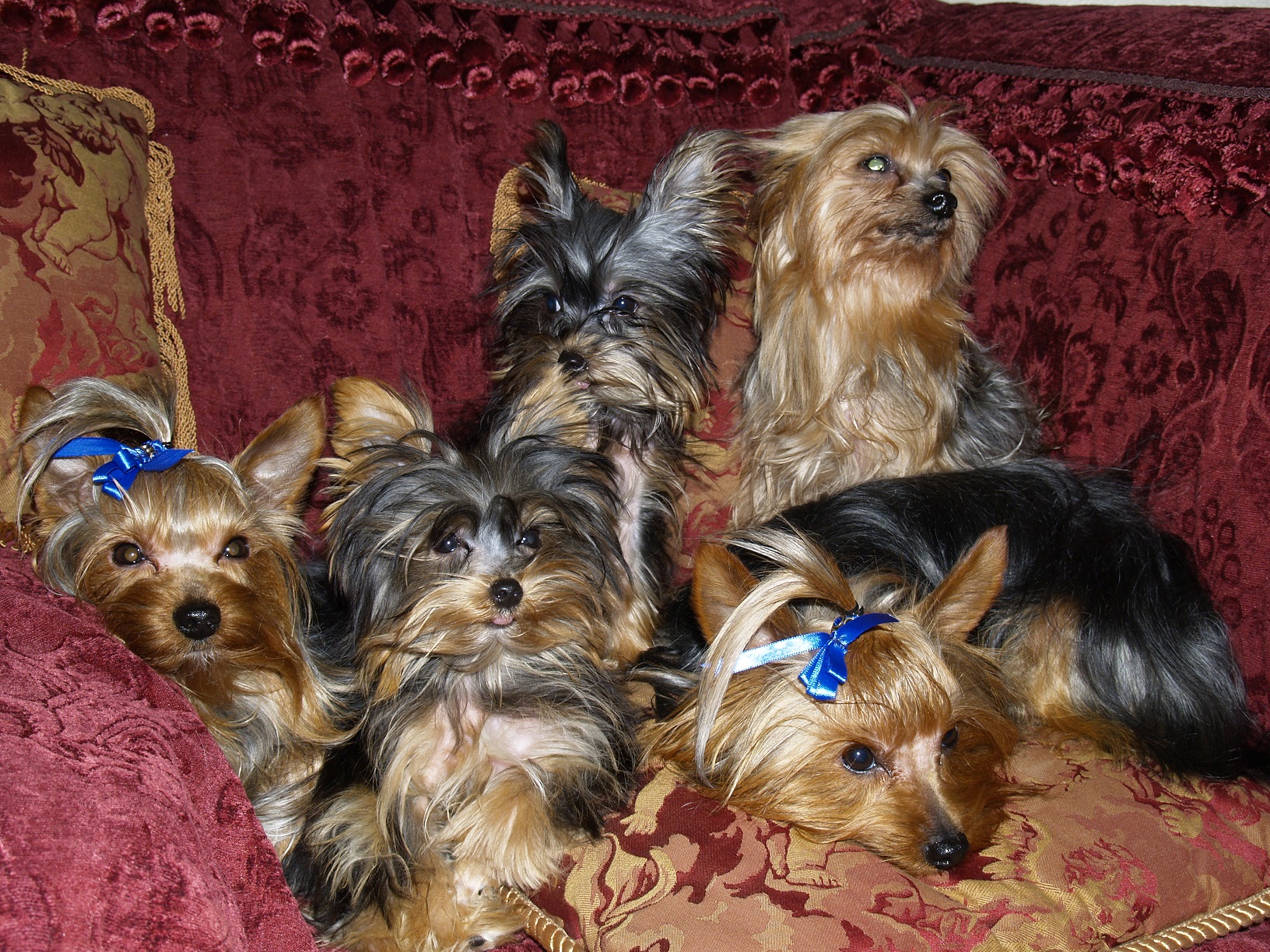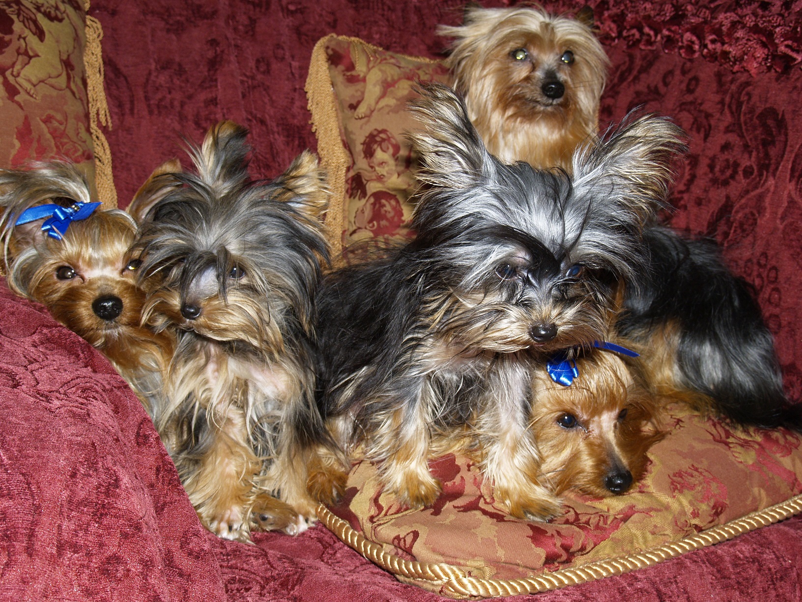 We have raised them together, they are inseparable. Clyde is Slim and is a cross between a Fox Face Yorkie and a Baby Doll Face Yorkie and his Brother Bruno is definately a Teddy Bear Yorkshire Terrier. Bruno is muscular and larger than his younger brother Clyde. Even though Clyde is smaller, he seems to be fearless and his bigger brute of a Brother kind of takes care of his younger brother, but he is much more cautious as he likes to stay in the background and watch his younger Brother instigate all types of different situations. It is very interesting watching these two in action.