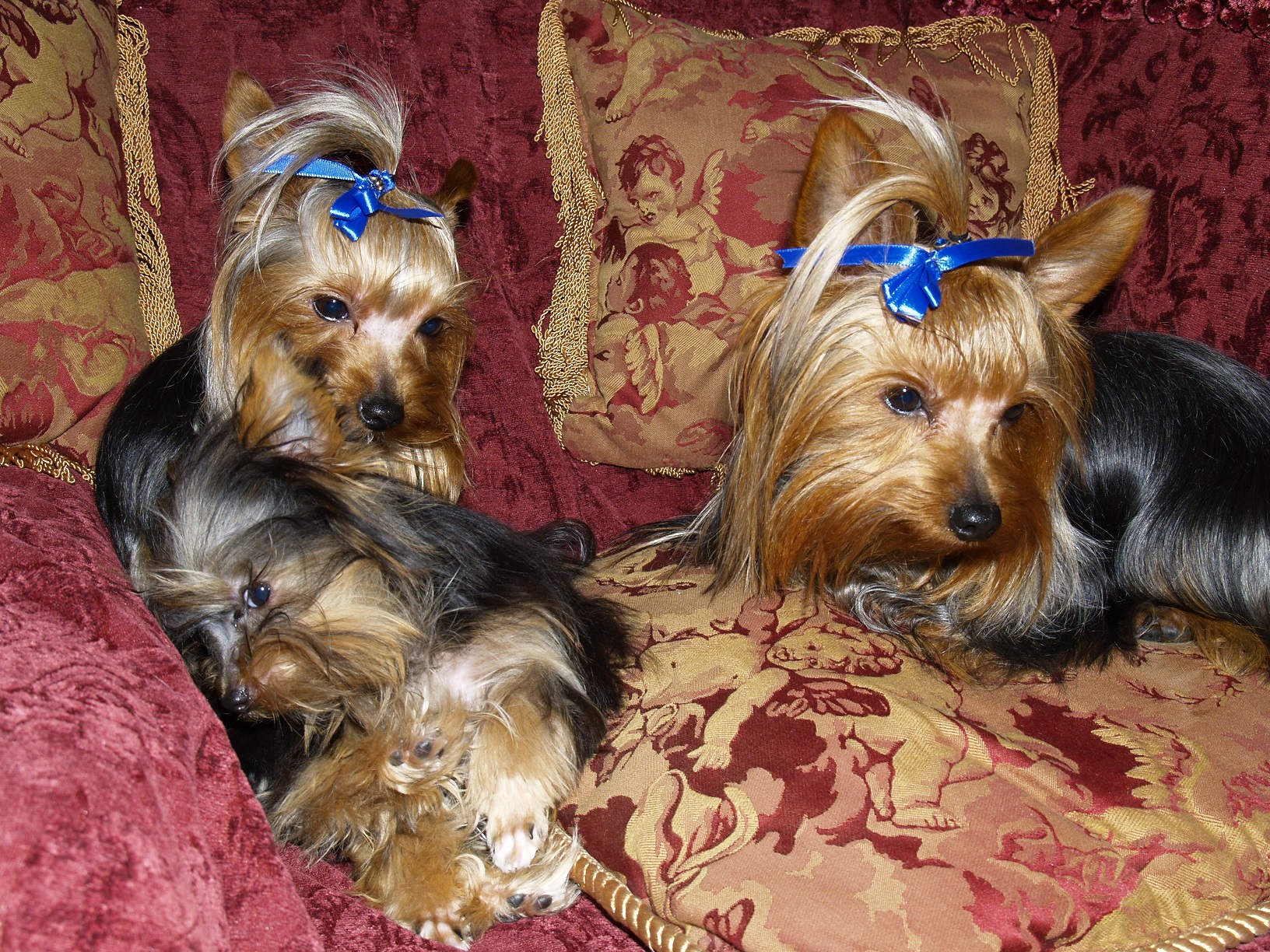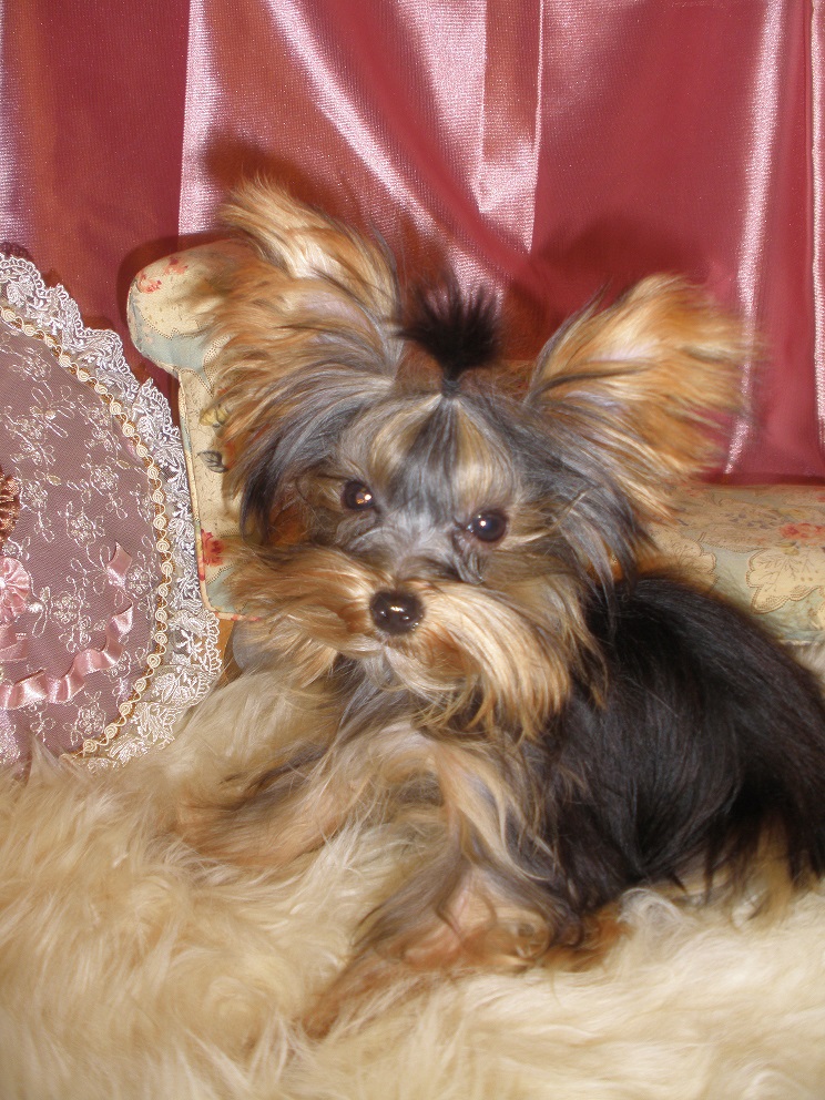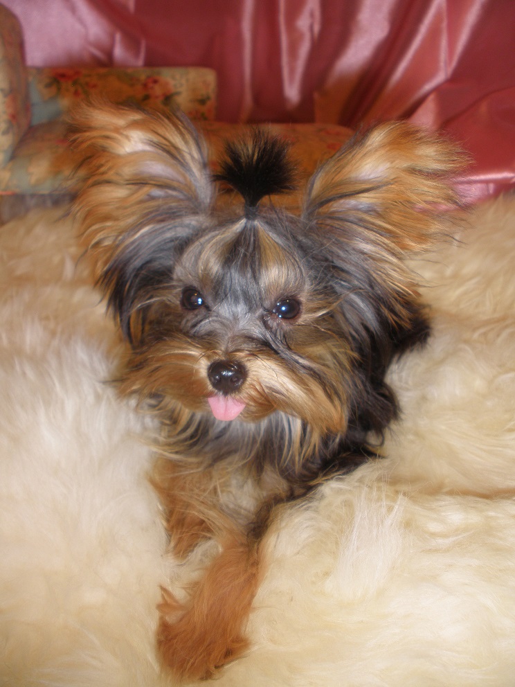 Isabelle "Mouser of Lafayette" Isabelle "Mouser of Lafayette" AKC REGISTERED, WEIGHT: 4.5 LBS. Born: June 26th, 2013 Isabelle is a Baby Doll Face Yorkshire Terrier She lives with Clyde & Bruno, Brothers "From the Bonnie & Clyde Gang" Isabelle is the Smallest Yorkie in our house. She is Boss, and is very smart, she actually communicates with humans, actually sounds like she talks sometimes. She is very expressive and full of Personality. Her eyes follow you without moving her head. She is very energetic and fast. Jumps around and thinks she is the toughest one in the house with no fear. Loves to sleep under the covers after a hard day of running around...